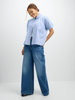 Introducing the Jet Blue Stripe Poplin Shirt made from 100% cotton for a comfortable fit. This stylish shirt is perfect for any occasion with its classic design.
