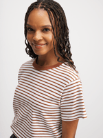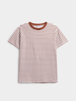 Unwind in style with the Jet Brown/White Stripe T-Shirt. Made from 100% cotton for ultimate comfort. Features a red contrast rib neck on a crisp white base. Versatile and stylish, perfect for any casual occasion.