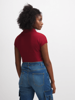 Stay cozy and stylish with this brown drop shoulder rib poloneck. Made with a blend of 57% cotton, 38% polyester, and 5% spandex for comfort and flexibility. This top is a versatile addition to your wardrobe that is easy to mix and match. Perfect for layering or wearing on its own. Designed to be returned if you're not completely satisfied.