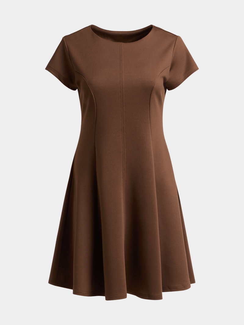 Stay effortlessly stylish with the Jet Brown Fit & Flare Mini Dress. Crafted with a blend of rayon, polyester, and spandex, this dress is soft and comfortable.