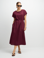 Introducing the Jet Burgundy Elasticated Midi Dress! Made with a blend of polyester, rayon, linen, and cotton for ultimate comfort. This dress is perfect for any occasion with its versatile style.