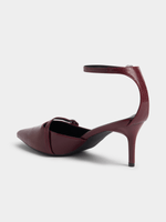 Step out in style with the Jet Burgundy Ankle Tie Heels. These chic heels feature a sophisticated pointed toe and a trendy ankle tie for added flair. Crafted from high-quality patent material, these heels are perfect for any occasion. Stay comfortable all day with their durable construction and versatile design. Elevate your look with these stunning heels.