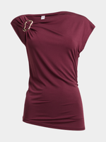 Get ready to turn heads in the Jet Women's Burgundy Buckle Top. Made with a blend of 95% Polyester and 5% Spandex, this top is equal parts comfy and stylish.