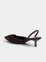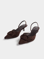 Step out in style with the Jet chocolate slingback heels! These chic heels feature a sleek pointy toe and a textured croc design in a beautiful ecru shade. Made from luxurious velour material, these heels will elevate any outfit effortlessly. Comfortable and elegant, with a durable construction that ensures long-lasting wear.