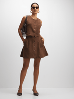 Get ready to elevate your style with the Jet Chocolate Suede Mini Skirt. Made with a luxurious blend of 95% polyester and 5% spandex, this skirt is the perfect addition to your wardrobe. With its soft suede material and flattering mini length, you'll be turning heads wherever you go.