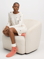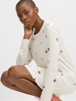 Introducing our cozy cream sleepshirt with multicolour stars. Made from soft DTY fabric, this sleepshirt is perfect for a good night's sleep. With a relaxed fit and cute design, you'll feel stylish and comfortable.