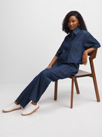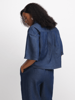 Elevate your wardrobe with our Jet Dark Chambray Boxy Shirt. Made from 100% Lyocell for a soft touch. Versatile and stylish, this shirt is perfect for any occasion. Pair it with your favorite bottoms for a chic outfit.