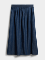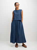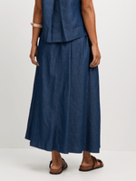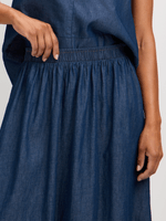 Elevate your style with the Jet Dark Wash Chambray Volume Skirt. Made from 100% cotton, this skirt is a versatile addition to your wardrobe. Designed for comfort and flair, it's easy to mix and match with your favorite tops. Rock a chic look with this timeless piece.