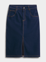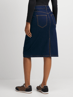 Introducing our Jet Dark Wash Midi Front Slit Skirt, crafted with 85% cotton for a comfortable fit. This stylish skirt features a trendy front slit for easy movement. Versatile and chic, this skirt is a must-have addition to your wardrobe. Pair it with your favorite top for a casual yet stylish look.