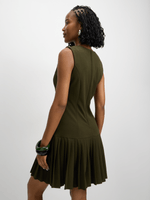 The Jet Women's Fatigue Pleated Sleeveless Mini Dress offers a comfortable and stylish option for any occasion. Made from a polyester blend, it features a flattering pleated design.