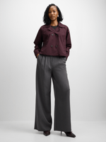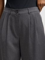 Introducing Jet Women's Grey Melange Front Pleat Wide Leg Pants. Made with a soft poly viscose material, these stylish pants feature a flattering front pleat. The 95% polyester and 5% elastane blend ensures comfort and durability.