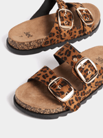 Step out in style with these chic leopard print buckle sandals from Jet. Made from high-quality microfiber, these sandals are not only fashionable but also comfortable to wear all day long. The adjustable buckle ensures a perfect fit, while the durable sole provides traction and support. Perfect for adding a pop of print to any outfit, these sandals are a must-have for your wardrobe.