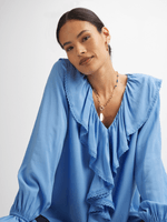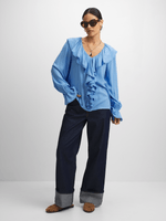 Introducing our Jet Light Blue Pretty Blouse crafted from 100% Viscose for a luxurious touch. This stylish piece is perfect for any occasion with its flattering fit and chic design. Feel confident and stylish in this versatile blouse that is sure to elevate your wardrobe. Ideal for those who appreciate quality and comfort in their clothing choices.