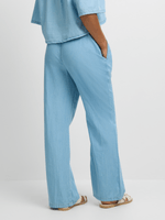 Elevate your style with our Jet Light Wash Chambray Wide Leg Trouser. Made from 100% cotton, these locally-made trousers offer comfort and style in one.