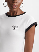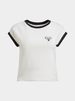 Introducing our Jet Milk Contrast T-shirt - a cozy blend of 97% cotton and 3% elastane for the perfect fit. Features intricate embroidery for a stylish touch. Designed for comfort and easy care, this tee is a versatile addition to your wardrobe. Say hello to your new favorite go-to piece!