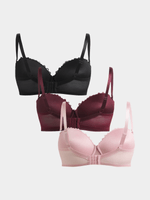 Indulge in luxury with our Jet Lace Balconette Bras! This stunning 3-pack features rose, maroon, and grey hues with delicate lace detailing. Made from soft microfiber, these bras provide comfort and support all day long. Treat yourself to ultimate elegance and style.