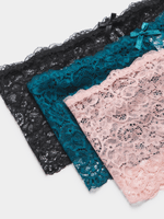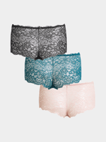 Indulge in comfort with our Jet lace boy leg pack! Featuring a mix of teal, black, and blush colors, this 3-pack is perfect for everyday wear. Made with soft lace material for a cozy fit. Feel confident and stylish all day long. Upgrade your underwear drawer today!
