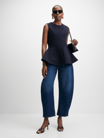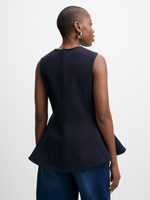 Introducing the Jet Navy Melton Sleeveless Top! Made from 100% polyester for a comfortable wear. This flared top is perfect for any occasion.