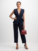 Jet navy slim leg pants blend comfort and style with a 95% polyester and 5% spandex fiber content. Designed for everyday wear, these pants feature a classic barrel leg silhouette.