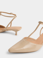 Step out in style with our Nude T-Bar Ankle Tie Kitten Heel. Made from high-quality patent material, these shoes are a must-have in any wardrobe. The ankle tie adds a chic touch, while the kitten heel provides both style and comfort. Elevate your look with these versatile heels.