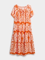 Get ready to turn heads in our eye-catching tiered maxi dress! Featuring puff sleeves and a vibrant orange hue, this dress is perfect for any occasion.