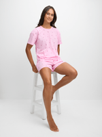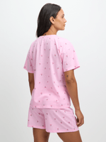 Introducing our Jet Women's Pink Cherry Short Pyjama Set for cozy nights in. Made from soft poly-cotton, this set features a playful cherry print. The set is perfect for lounging and sleeping, with a comfortable fit that you'll love.