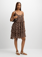 Elevate your style with the Jet Polka Dot Strappy Chiffon Frill Mini Dress. Made from 100% polyester, this dress features playful polka dots, a flattering frill detail, and delicate chiffon fabric.