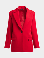 Elevate your wardrobe with our Jet Red Oversized Blazer. Made from 95% polyester and 5% elastane for a comfortable fit. Versatile and stylish, this blazer is a must-have for any fashion-forward individual. Perfect for any occasion. Be bold, be confident in Jet.