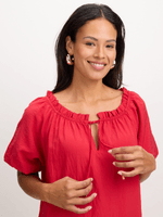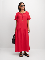 Introducing the Jet Red Puff Sleeve Tier Maxi Dress crafted with 90% Rayon and 10% Nylon for a soft and comfortable feel. This dress is perfect for any occasion with its stylish puff sleeves and tiered design.