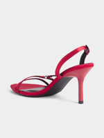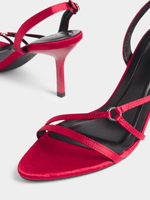 Elevate your style with the Jet red strappy stiletto. Made from satin material, this trendy heel is perfect for any occasion. Enjoy a comfortable fit with a sleek design.