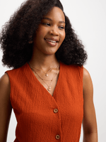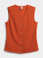 Stay stylish with the Jet Rust Button Through Vest. Made from a soft polyester blend with a touch of spandex for comfort. Features include a button-through design for easy wear. Perfect for adding a pop of color to your outfit.