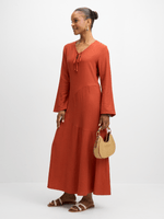 Make a statement in the Jet Rust Crinkle Maxi Beat Dress. Crafted from 85% Rayon and 15% Nylon, this dress is perfect for any occasion.