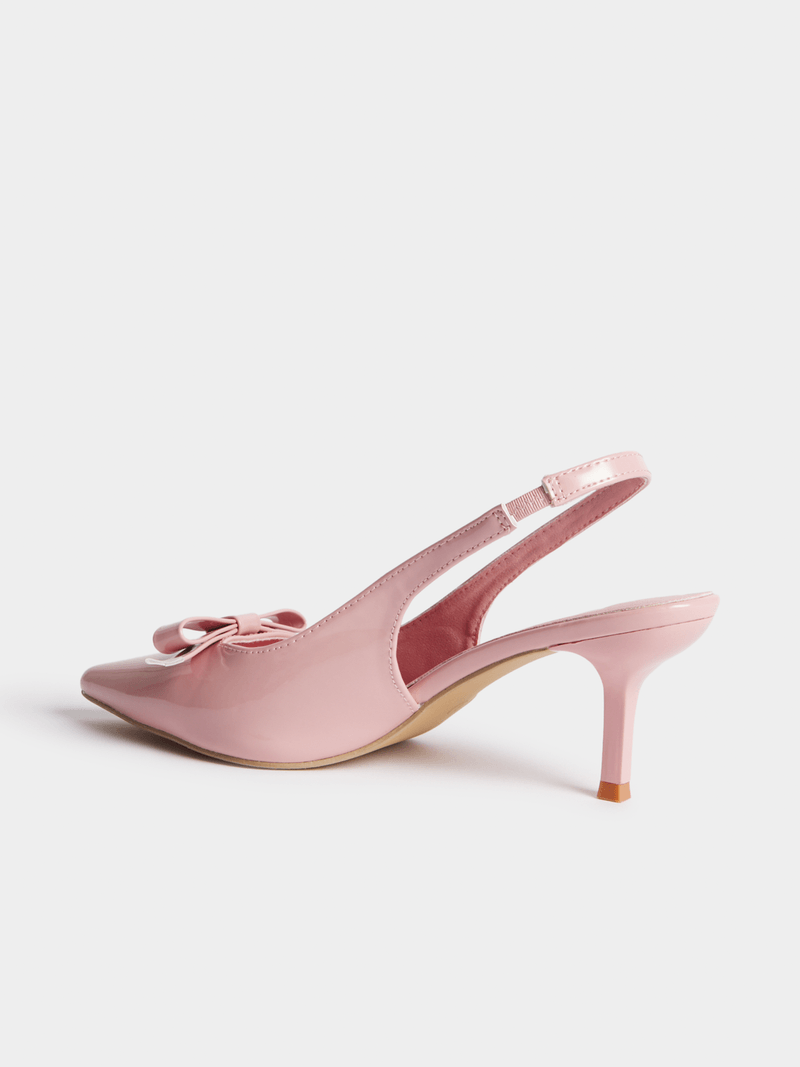 Introducing our soft pink kitten sling heel with a charming bow detail. Made for comfort and style, this adorable heel is perfect for any occasion. Featuring a non-slip sole and adjustable strap for a secure fit. Step out in confidence with this must-have addition to your shoe collection.