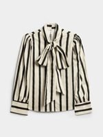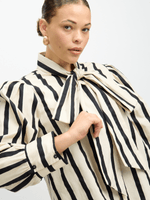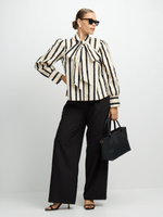 Elevate your wardrobe with the Jet Women's Stone Stripe Bow Poplin Shirt. Made of 100% cotton, this stylish piece features a chic bow detail and a flattering stripe pattern.