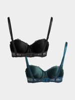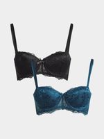 Indulge in comfort and style with our Jet 2 Pack Balconette Bra. Crafted with soft lace in teal and black, it's perfect for everyday wear. The delicate design adds elegance to any outfit, while providing all-day support. Feel confident and fabulous wherever you go!