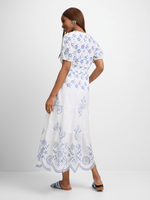 Meet your new favorite summer dress! The Jet White Blue Print Maxi Dress is made from 100% cotton for ultimate comfort. With a stunning blue print and delicate anglaise detailing, this dress is perfect for any occasion. Enjoy the freedom to move and twirl, while feeling effortlessly stylish. Get ready to turn heads wherever you go in this must-have piece!