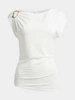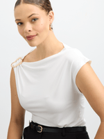 Elevate your wardrobe with the Jet Women's White Buckle Top. Made with 95% polyester and 5% spandex, this top features a chic buckle detail for a touch of sophistication.