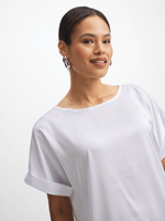 Introducing our Jet Women's White Fluid Satin Blouse, crafted with 100% polyester for a luxurious feel. This stylish blouse is perfect for any occasion, offering a flattering round neck and fluid silhouette.