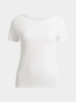 Elevate your style with our Jet White High Neck Crinkle Knit Top. Made with a blend of 99% polyester and 1% spandex, this top offers a comfortable and flattering fit.