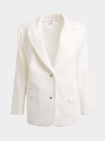 Introducing the effortlessly chic Jet White Oversized Blazer, crafted from a luxurious blend of linen, polyester, and rayon. This versatile piece exudes casual sophistication and is perfect for any occasion. With a relaxed fit and timeless design, this blazer is a must-have addition to your wardrobe.