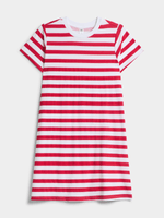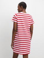 Stay effortlessly chic in the Jet White Red Stripe T-Shirt Dress. Made from 100% cotton, this dress offers comfort and style in one. Rock the classic white and red stripes and enjoy the versatility of a t-shirt dress that is perfect for any casual occasion.