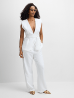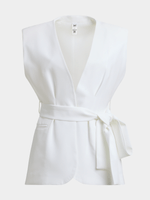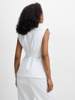 Elevate your wardrobe with the Jet Women's White Sleeveless Belted Blazer. Made with 95% Polyester and 5% Spandex for a comfortable fit.