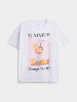 Take on summer in style with our Jet White Orange Graphic T-shirt. Made from 100% cotton for ultimate comfort. This tee is perfect for any occasion, from casual outings to relaxing at home. With a vibrant floral graphic, it's a must-have for your wardrobe.