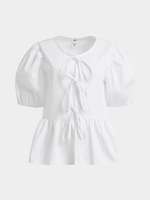 Elevate your style with our Jet White Tie Front Blouse. Made from 100% cotton, this chic blouse features a flattering tie front detail. Perfect for any occasion, this versatile piece is a must-have for your wardrobe. Stay on-trend with this classic and comfortable blouse.