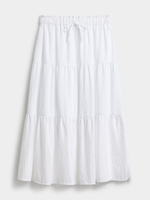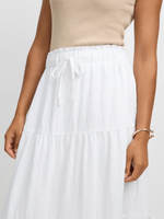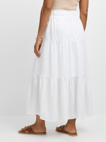 Introducing the Jet White Tiered Maxi Skirt, a versatile piece for any occasion. Made with a luxurious blend of 90% Rayon and 10% Nylon, this skirt is both comfortable and stylish. With its tiered design and flowing silhouette, it's the perfect addition to your wardrobe.