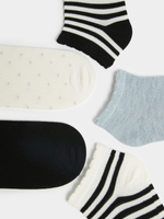 Grab a 5 pack of Jet black and white lowcut fashion socks for endless style options. Made from a comfortable polyester blend, these socks are perfect for any outfit. Say goodbye to boring socks and step up your fashion game!