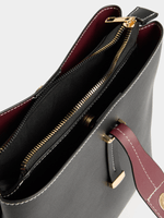 Introducing the Jet Black Bucket Bag with Strap Detail! Made from durable polyester, this trendy bag is perfect for everyday use. With a stylish strap detail, it's both functional and fashionable.