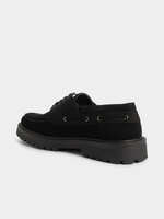 Step out in style with Jet's black chunky fashion boat shoe. Crafted with nubuck material for durability and comfort. Features a trendy design that pairs well with any outfit.