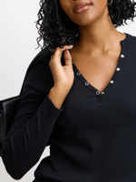 Introducing the Jet Women’s Black Henley Long Sleeve T-shirt, a versatile addition to your wardrobe. Made with 95% cotton and 5% spandex for a comfortable fit.