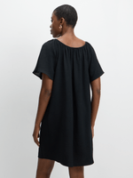 Jet black off-shoulder midi dress made of 100% polyester. A chic and trendy addition to any wardrobe. Comfortable woven material with a flattering silhouette.